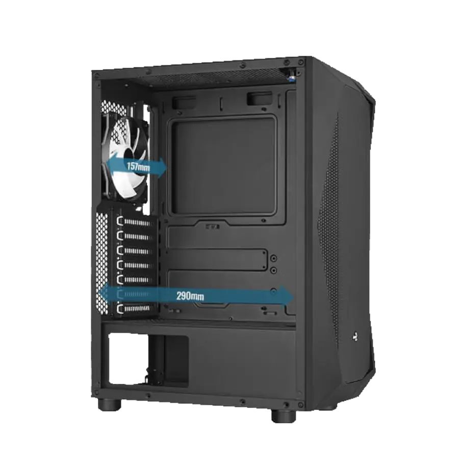 Compatibilidad con Componentes de Alto Rendimiento: Soporta placas base ATX, Micro-ATX y Mini-ITX, disipadores de CPU de hasta 157mm de altura y tarjetas gráficas de hasta 290mm de longitud (sin radiador frontal).