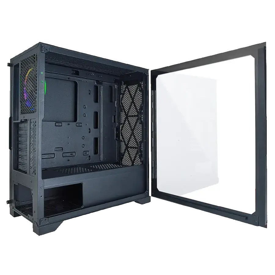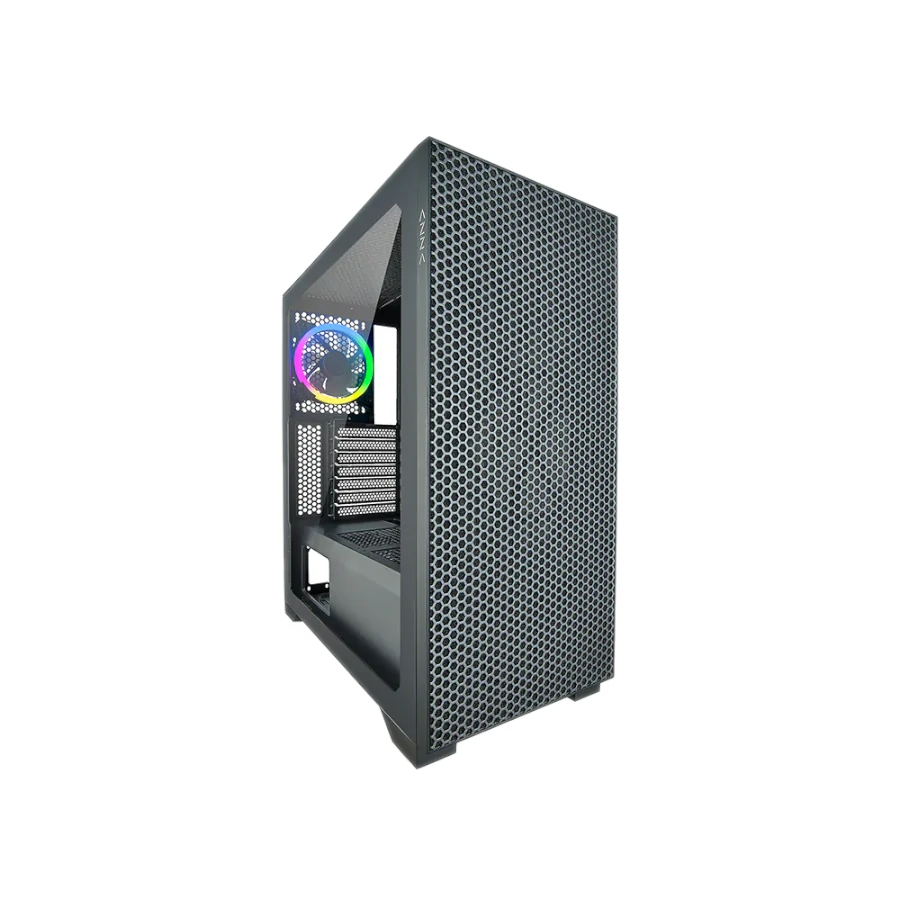 La torre Azza Hive 450 redefine el concepto de refrigeración eficiente en un diseño elegante y funcional. Diseñada especialmente para gamers y entusiastas del hardware, esta Mid Tower ATX combina una excelente circulación de aire con un estética moderna gracias a su panel lateral de vidrio templado.