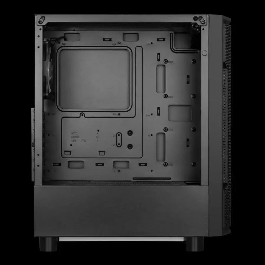 El Athena M6 Lite cuenta con un panel frontal de malla en forma de pilar con espacio para tres ventiladores RGB de 120mm y ventilación perforada alrededor. Este diseño maximiza la entrada de aire para satisfacer las demandas de enfriamiento de los componentes de última generación.