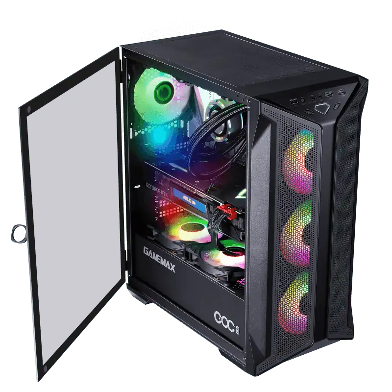 El GameMax Brufen C1 es un chasis Midi-Tower ATX diseñado para ofrecer una refrigeración excepcional, especialmente para CPUs Intel de 10.ª generación. Su innovador sistema COC (Cooling Overclocking) incluye un turboventilador integrado que optimiza el flujo de aire y mantiene tus componentes a la temperatura ideal.
