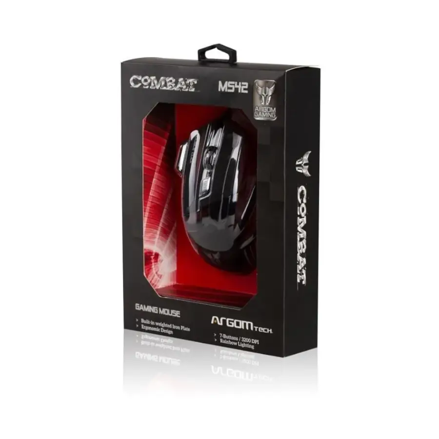 Mouse Argom Gaming MS2042 Combat 3200DPI 7 Botones USB Luces Arcoíris Plug & Play Negro
